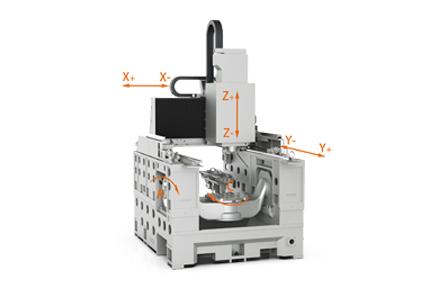 FMC-600V 五軸加工中心整體采用龍門式結(jié)構(gòu),雙立柱高架結(jié)構(gòu),Y軸采用雙驅(qū)結(jié)構(gòu),并配置AC軸搖籃式回轉(zhuǎn)工作臺,可一次裝夾完成銑、鉆、擴(kuò)、鏜、攻、锪等多工序的高精、高效加工。
