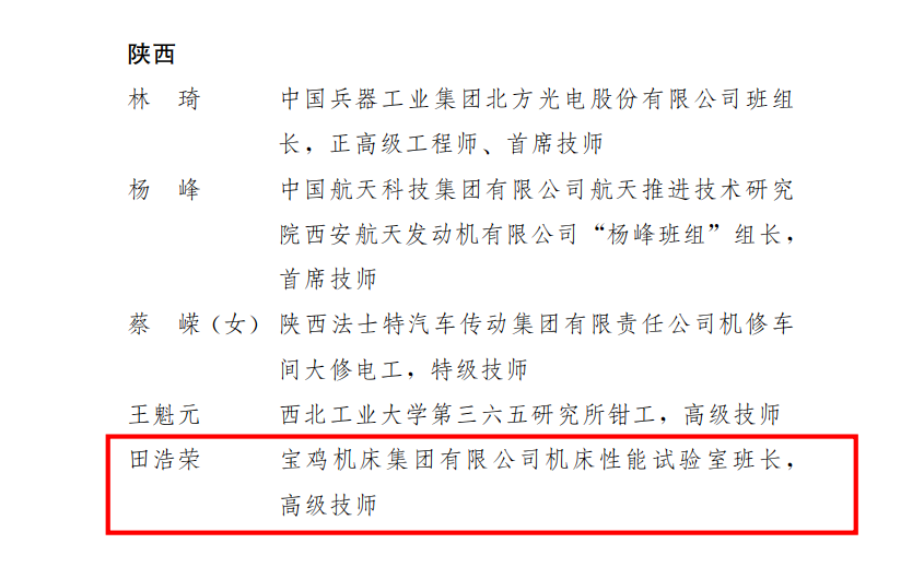 田浩榮是第十三屆全國(guó)人大代表,曾榮獲全國(guó)勞動(dòng)模范、改革開放40周年中國(guó)機(jī)械工業(yè)百名工匠、三秦工匠、陜西省首席技師等榮譽(yù),享受國(guó)務(wù)院政府特殊津貼;以他名字命名的田浩榮創(chuàng)新工作室被授予“國(guó)家級(jí)技能大師工作室”和“全國(guó)示范性勞模和工匠人才創(chuàng)新工作室”。